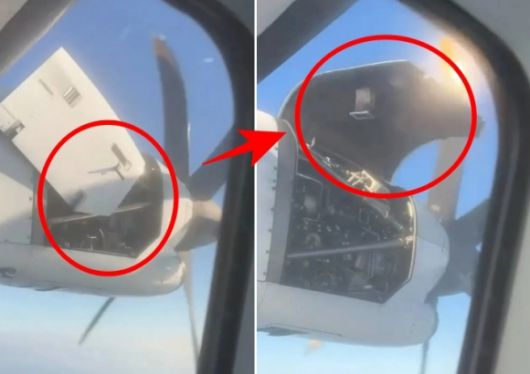 승객들을 태운 비행기의 엔진 커버가 상공에서 열리는 아찔한 사고가 발생했다.