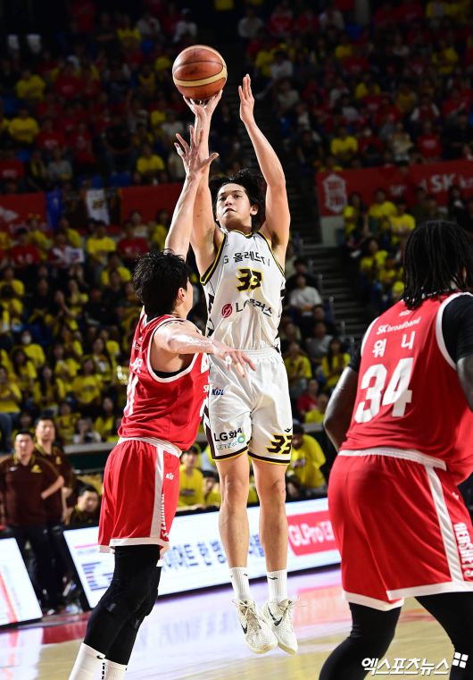 (엑스포츠뉴스 잠실, 박지영 기자) 17일 오후 서울 송파구 잠실학생체육관에서 열린 '2024~2025 KCC 프로농구 챔피언결정전' 7차전 서울 SK 나이츠와 창원 LG 세이커스의 경기, LG 칼 타마요가 슛을 시도하고 있다.박지영 기자 jypark@xportsnews.com