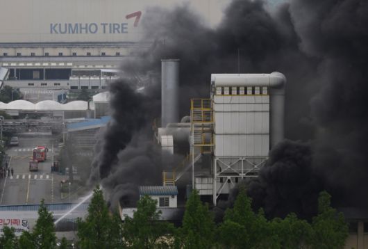 17일 소방 당국에 따르면 오전 7시 11분경 광주 광산구 금호타이어 광주공장 1차 공정동에서 발생한 화재는 7시간 이상 이어지는 가운데 연결동까지 불길이 번지고 있다. 금호타이어 광주공장은 편의상 서쪽 공장(2공장)과 남쪽 공장(1공장)으로 구분하는데, 낮 12시 기준 2공장의 70%가 불에 탔다. 1차 공정동에는 당시 타이어 생산에 필요한 생고무 20톤을 포함해 합성고무 등 인화성 물질이 매우 많았던 것으로 전해졌다.