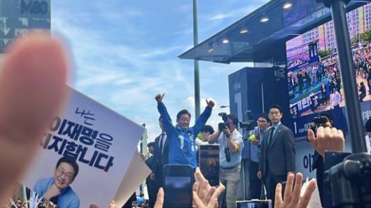 17일 오후 광주 김대중컨벤션센터 앞 광장. 이재명 더불어민주당 대선 후보가 무대에 오르자 시민들은 손팻말을 흔들며 환호했다. '이재명 대통령 나라에서 살고 싶습니다'라는 문구가 적힌 피켓들이 곳곳에서 눈에 띄었고, 인파 속 시민들은 휴대전화를 꺼내 후보의 연설을 기록했다.