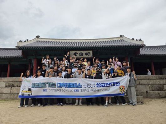 이날 600년 전통을 자랑하는 성균관대학교 명륜캠퍼스를 방문해 두 번째 일정을 소화했다. 이번 투어에는 초·중학생 40명이 참여했으며, 성균관대 재학생 멘토들이 직접 안내를 맡아 학과 소개는 물론 입시 준비 과정과 대학 생활의 실상을 전달했다. 단순한 견학을 넘어 실질적인 진로 탐색 기회로 자리매김했다는 평가다.