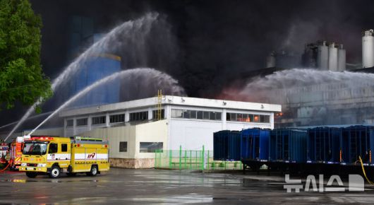 또 지상에서는 각 지역에서 동원된 소방차량이 공장을 둘러싸고 물을 고압 분사하며 불길을 잡아가고 있다.