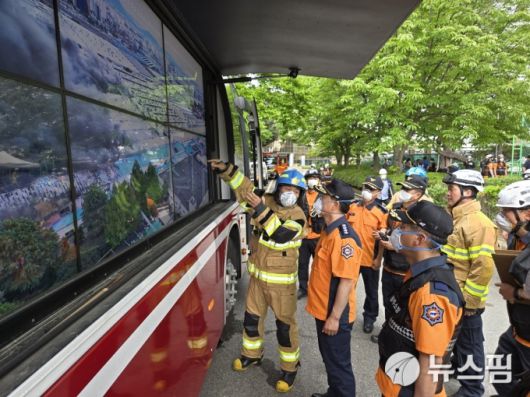 [사진=소방청 제공] [세종=뉴스핌] 김보영 기자 = 허석곤 소방청장이 17일 광주시 광산구 금호타이어 화재 현장을 찾아 피해 상황을 보고받은 뒤 진압 대책을 논의했다.boyu@newspim.com 저작권자(c) 글로벌리더의 지름길 종합뉴스통신사 뉴스핌(Newspim), 무단 전재-재배포 금지