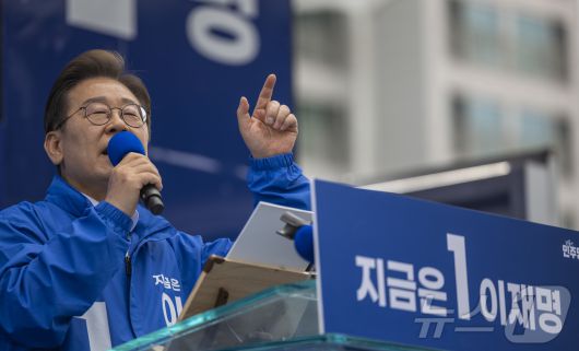 이재명 더불어민주당 대통령 후보가 17일 광주광역시 서구 김대중컨벤션센터 광장에서 열린 집중 유세에서 지지를 호소하는 연설을 하고 있다. (공동취재)2025.5.17/뉴스1 ⓒ News1 이재명 기자 |