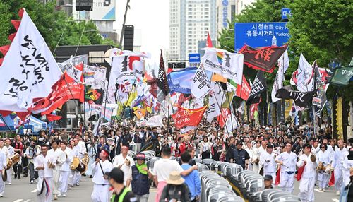 행진은 5·18 사적지인 전남대와 광주역을 비롯해 조선대, 광주고, 북동성당 등 모두 5곳에서 출발해 메인 무대가 마련된 금남공원 앞 교차로까지 30분~1시간 가량 이어졌다.