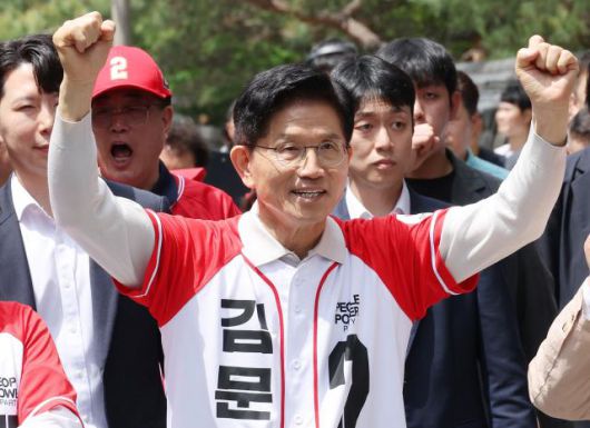 김문수 국민의힘 대선 후보가 17일 전북 전주시 전동성당인근에서 유세하고 있다. [사진=연합뉴스] |