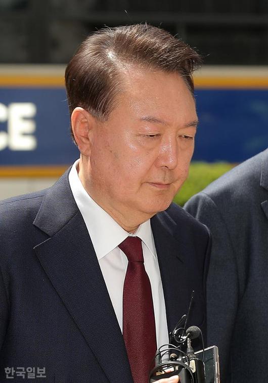 내란 우두머리 혐의로 기소된 윤석열 전 대통령이 지난 12일 서초구 서울중앙지법에서 열린 공판에 출석하고 있다. 사진공동취재단 |