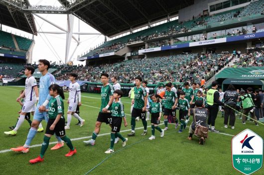 전북현대는 17일 오후 4시 30분 전주월드컵경기장에서 열린 하나은행 K리그1 2025 14라운드에서 FC안양에 2-0으로 승리했다. K리그1 4월의 선수상을 받은 전진우가 멀티골을 폭발했다. 이로써 전북은 공식전 12경기 무패 행진을 이어갔다.