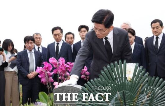 [더팩트ㅣ이효균 기자] 김문수 국민의힘 대통령 후보가 17일 오전 광주 북구 5.18민주묘지를 찾아 박관현 열사의 묘역을 참배하던 중 눈물을 흘리고 있다.
