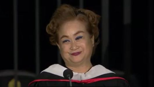 이미경 CJ그룹 부회장이 16일(현지시각) 미국 로스앤젤레스(LA) 서던캘리포니아대(USC) 영화예술학교(School of Cinematic Arts) 졸업식에서 연설을 했다. 이 대학은 스타워즈 제작자 조지 루커스와 포레스트 검프의 로버트 저메키스 감독 등을 배출한 영화 명문 대학교다.