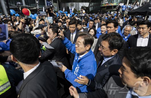 (광주=뉴스1) 이재명 기자 = 이재명 더불어민주당 대통령 후보가 17일 광주광역시 서구 김대중컨벤션센터 광장에서 열린 집중 유세를 마친 뒤 유세장을 떠나다 시민들의 요청으로 자신의 저서에 서명을 해주고 있다. (공동취재) 2025.5.17/뉴스1psy5179@news1.krCopyright ⓒ 뉴스1. All rights reserved. 무단 전재 및 재배포, AI학습 이용 금지.