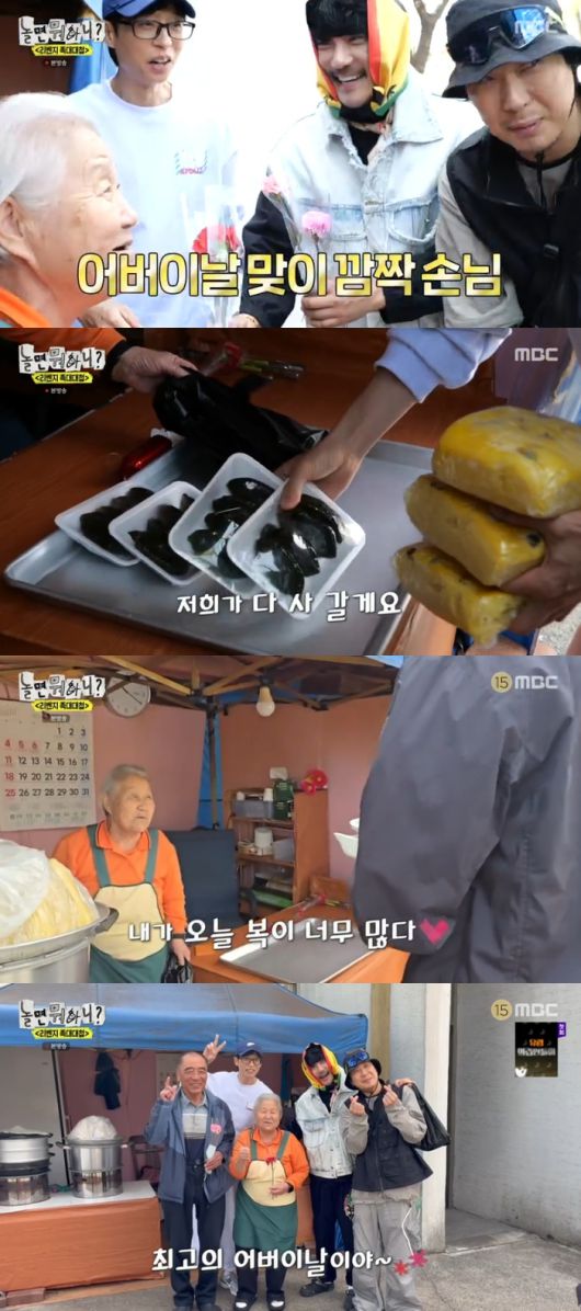 이어 유재석이 “우리 얼마 있는데? 5만원? 그럼 5만원어치 사자. 저희가 다 사 갈게요”라며 음식을 전부 구매하자 할머니는 “내가 오늘 복이 너무 많다. 오늘 최고의 어버이날이야”라며 고마워했다.