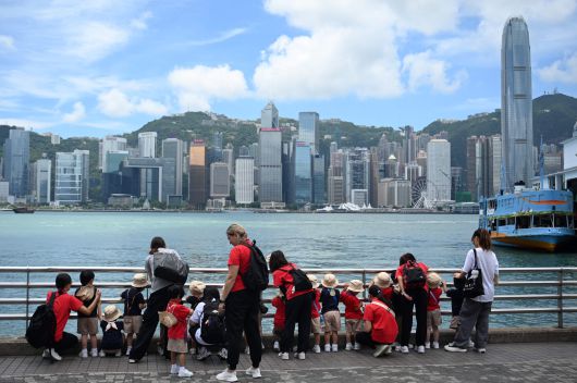 홍콩 참고 사진. 지난 15일(현지시간) 홍콩의 빅토리아 항구를 보기 위해 어린이들이 줄을 서 있는 모습. AFP=연합뉴스 |