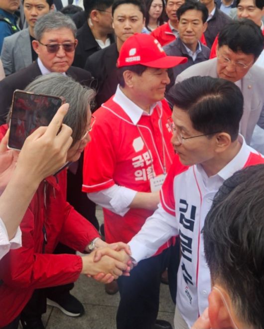 국민의힘의 대선 후보 단일화 갈등 속에서 “ㅎㅎ어떡하냐 문수야”로 김문수 후보를 조롱하는 글을 페이스북 계정에 올렸다가 ‘급태세 전환’으로 논란이 됐던 이수정 경기 수원정 당협위원장이 김 후보를 만났다.