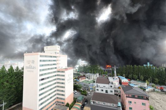 광주 금호타이어 공장에서 난 큰불이 13시간 넘게 꺼지지 않으면서 연기가 인근 주거지역까지 번지자 시민들의 대피 행렬이 시작됐다.