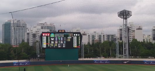 8회초까지 유신고가 세광고를 2-1로 앞서고 있음을 보여주는 전광판.(사진 MHN 엄민용 선임기자) |