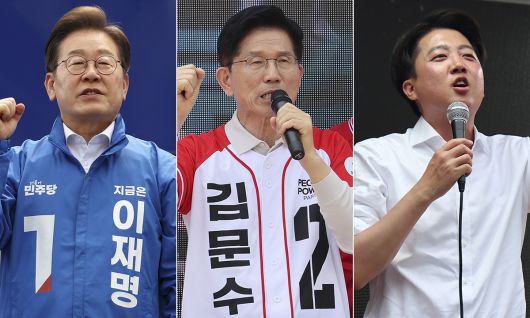 더불어민주당 이재명 대선후보(왼쪽부터), 국민의힘 김문수 대선후보, 개혁신당 이준석 대선후보. 연합뉴스 |