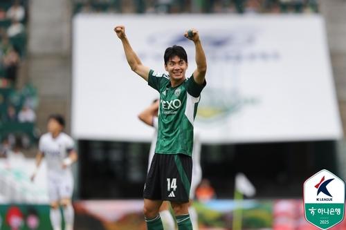 이날 후반 43분까지 88분을 뛰면서 리그 9·10호 골이자 3경기 연속 골 맛을 본 전진우는 주민규(대전·8골)를 제치고 득점 단독 1위가 됐다.