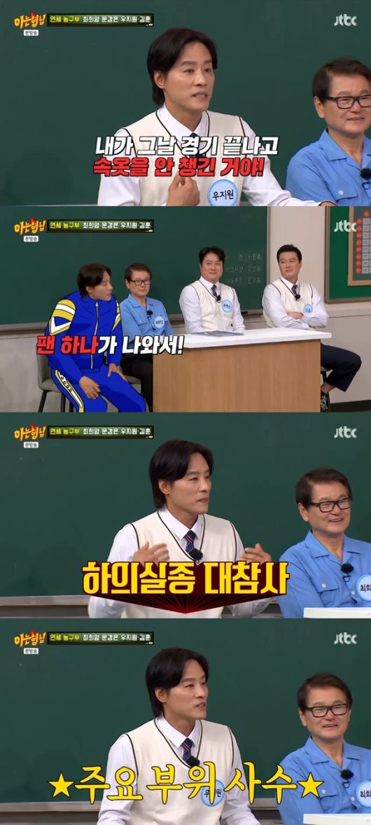 이날 김훈은 과거 '코트의 황태자' 우지원의 인기에 대해 "인기가 많아서 내가 막아주고 그랬다"고 밝혀 놀라움을 안겼다.
