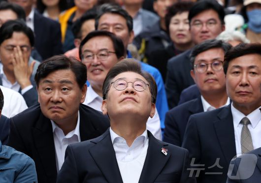 이재명 더불어민주당 대통령 후보가 17일 광주 동구 금남로에서 열린 제45주년 5·18 민주화운동 전야제에서 잠시 하늘을 응시하고 있다. (공동취재)2025.5.17/뉴스1 ⓒ News1 이재명 기자 |