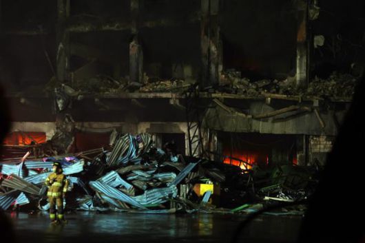 17일 광주 광산구 금호타이어 광주공장 건물이 화재로 일부 무너져 잔해물이 널브러져 있다. 연합뉴스 |