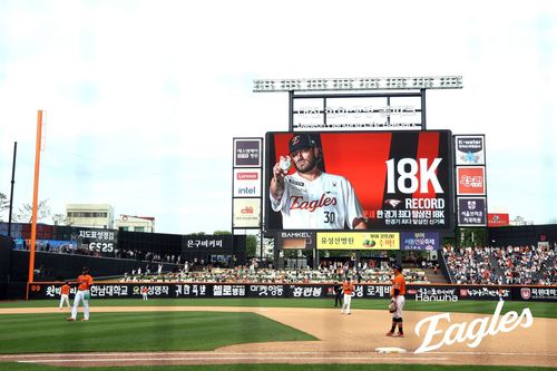 폰세의 한 경기 최다 탈삼진 타이기록을 알리는 전광판[한화 이글스 제공. 재판매 및 DB 금지]