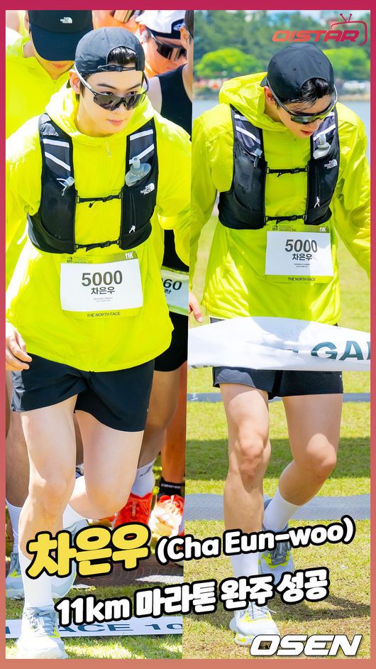 [OSEN=강릉, 민경훈 기자] 가수 겸 배우 차은우와 함께하는 국제 트레일러닝 대회 ‘TNF 100 강원' 행사가 17일 강원도 강릉시 초당동 경포호수광장에서 열렸다. 이 자리에는 홍보대사인 차은우와 션 및 예능 프로그램 '뛰어야 산다' 출연진과 함께 참석했다. 차은우가 11k 완주에 성공하고 있다. 2025.05.17 / rumi@osen.co.kr