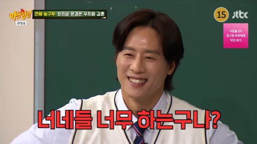 이날 방송에서는 과거 '연세 농구부' 시절 숙소 생활을 했던 모습이 공개됐다. 문경은이 어린 시절 서장훈과 티격태격하며 괴롭히는 모습이 공개되자, 이를 본 김희철은 "경은이 형이 장훈이형 엄청 괴롭혔네. 지금 김희철이 하는 짓 똑같네"라고 말했다.