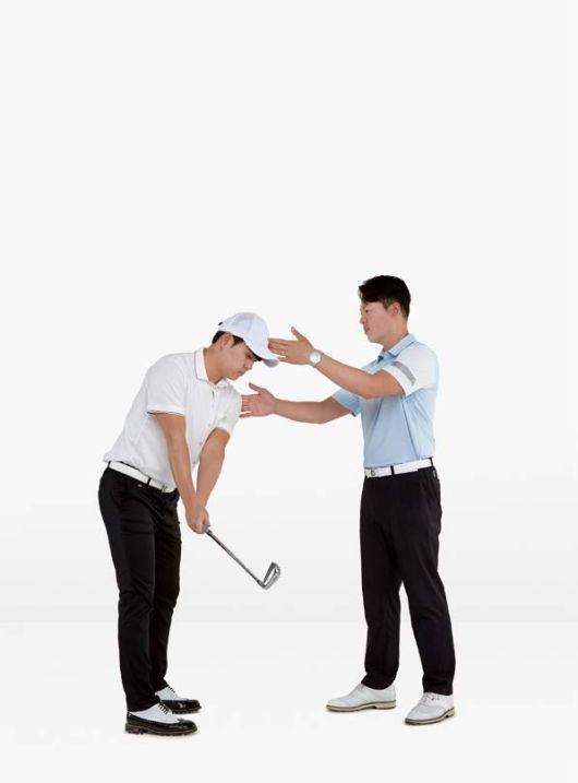 어깨 회전과 체중 이동을 돕기 위한 방법으로 ‘헤드 바라보기’를 추천한다. 테이크어웨이를 시작하면서 시선과 얼굴이 클럽헤드와 함께 간다고 생각하는 것이다. 너무 급하게 들어 올리는 골퍼들은 왜글이나 연습 스윙을 할 때 시선은 물론 고개도 살짝 헤드를 따라 움직여주면 체중이 오른쪽으로 이동하면서 몸통 회전이 수월해진다. 평소보다 평탄한 백스윙 궤도를 만드는 데에 도움이 되며, 몸에 들어간 힘과 긴장감이 줄기 때문에 유연성이 떨어지는 골퍼들에게도 효과적인 방법이다. 어드레스 때 타깃 반대쪽으로 약간 기울여준 척추 각을 백스윙을 하는 동안 유지해준다고 생각하는 것도 좋다.