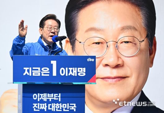이재명 더불어민주당 대통령 선거 후보가 제21대 대통령선거 공식 선거운동 첫 날인 12일 서울 청계광장에서 열린 '빛의 혁명' 광화문 유세에서 지지를 호소하고 있다. 이동근기자 foto@etnews.com 2025.05.12 |