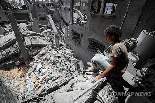 이스라엘 공습에 폐허가 된 주택가 [로이터 연합뉴스. 재판매 및 DB 금지]