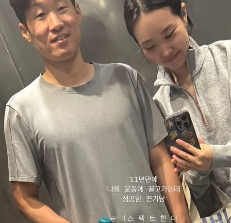 공개된 사진에서는 함께 운동에 나선 박지성 김민지 부부가 거울 앞에서 포즈를 취하고 있다.