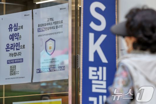SK텔레콤이 유심 교체를 소프트웨어(SW) 방식으로 대신할 '유심 재설정'을 시작한고 12일 밝혔다. 이날 서울 중구의 SKT 직영점에 해킹 사태 관련 안내문이 게시돼 있다. 2025.5.12/뉴스1 ⓒ News1 민경석 기자