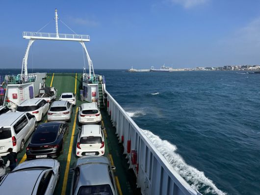 지난 2022년 차량을 싣고 우도를 향해 운항 중인 우도 도항선. 최충일 기자 |