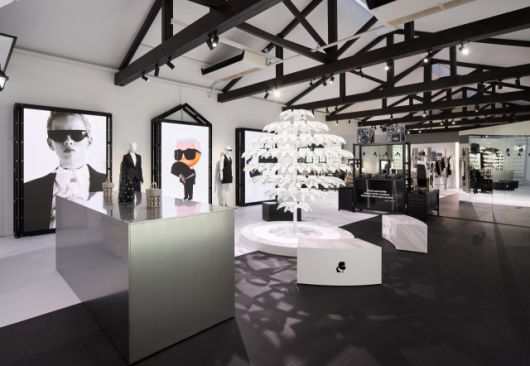 16일 서울 성수동 골목의 한 건물에서 뒤로 묵은 백발 머리, 검은 선글라스를 쓴 얼굴 실루엣의 조형물 뒤로 문이 열린다. 건물의 외관부터 내부까지 모두 흰색, 검은색으로 꾸며졌다. 바로 세계적인 패션 디자이너인 ‘칼 라거펠트’를 주제로 한 팝업스토어다. CJ온스타일은 칼 라거펠트의 철학을 담은 팝업을 17일부터 26일까지 운영한다.