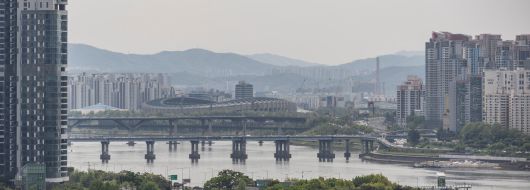 서울 성동구에서 바라본 서울숲, 강남, 송파 일대의 모습./연합뉴스 |