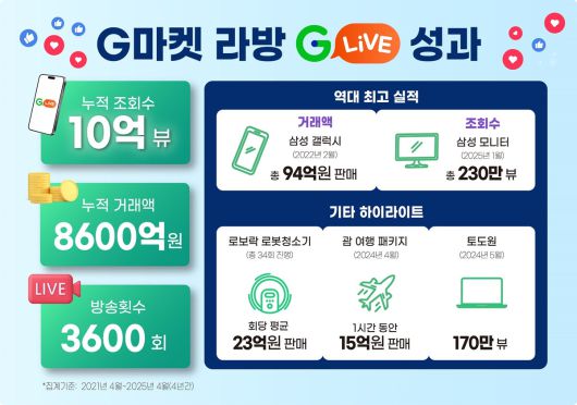 G마켓은 지난 4년간 자체 라이브방송 ‘G라이브’ 누적 조회수가 10억뷰를 돌파했다고 18일 밝혔다.