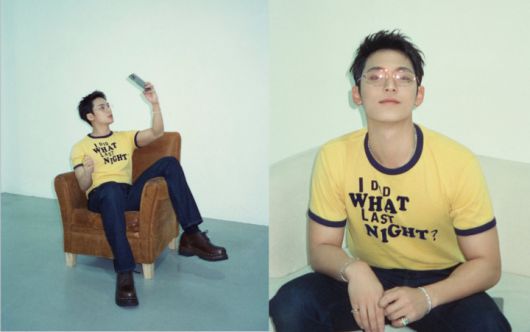민규가 착용한 티셔츠는 디자이너 브랜드 'ERL'의 'I DID WHAT LAST NIGHT RINGER TEE YELLOW'로, 현재는 구매가 불가능한 제품이다. 해당 제품을 착용해서 또 다른 무드를 만들어낸 스타도 있다. 바로 그룹 투모로우바이투게더의 연준이다.