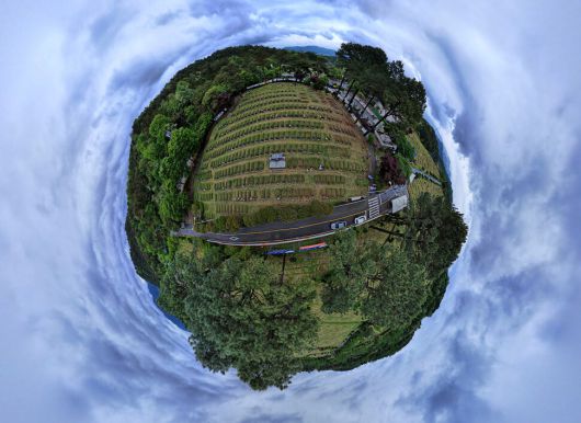 5·18 사적지 제24호인 ‘5·18 구묘지’다. 신군부의 야만적인 폭력에 맞서 싸우다 산화한 영령들의 안식처다. 1997년 국립5·18민주묘지(신묘역)가 조성되면서 많은 희생자가 이장됐고, 현재 이 구묘역에는 민주화운동을 한 뒤 사망한 인사가 다수 안장돼 있다. 묘역 들머리에는 전두환 부부의 기념비석이 부서진 채 땅에 묻혀, 참배객들이 이를 밟고 지나간다. 무인기를 띄워 찍은 파노라마사진을 구형으로 만들었다. |