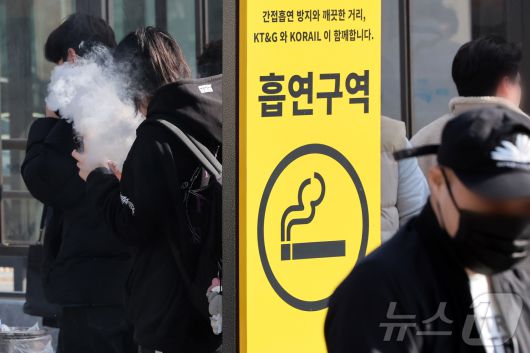 서울역 광장 흡연구역에서 시민들이 담배를 피우고 있다. 2025.3.19/뉴스1 ⓒ News1 이동해 기자 |