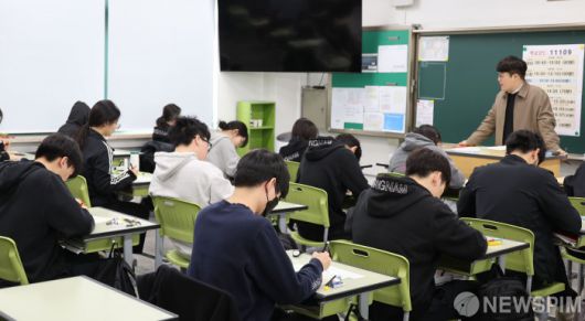 [서울=뉴스핌] 사진공동취재단 = 2025년 3월 전국연합 학력평가가 실시된 26일 오전 서울 금천구 금천고등학교에서 학생들이 시험 준비를 하고 있다. 2025.03.26 photo@newspim.com |