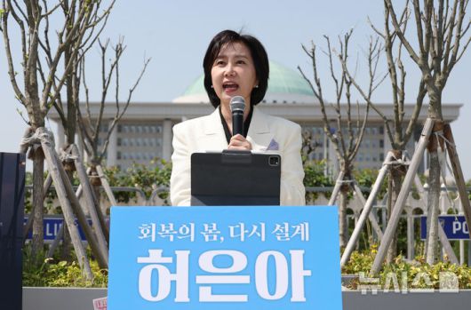 [서울=뉴시스] 고승민 기자 = 허은아 전 개혁신당 대표가 24일 서울 여의도 국회 앞에서 대선 출마 선언을 하고 있다. 2025.04.24. kkssmm99@newsis.com |