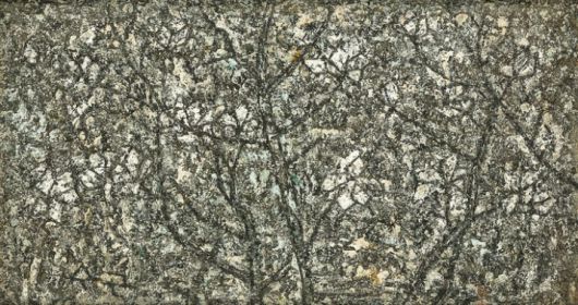 회백색과 암갈색 배경에 목련의 절제된 색채와 두터운 마티에르(물감이 중첩돼 표현된 재질감)가 조화를 이룬다.