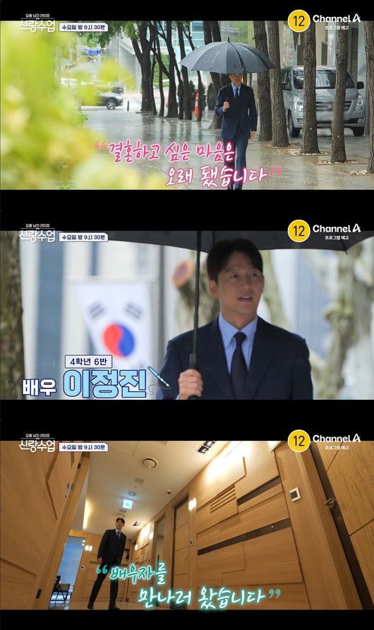 지난 17일 채널A ‘신랑수업’이 공개한 예고편에는 이정진이 새롭게 입학하는 모습이 그려졌다.