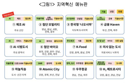 이후 지역·산업 전문가 인터뷰, 대담 등을 거쳐 지자체 성장 목표, 경제적 파급효과 등을 고려한 12개 메뉴판을 도출했다.