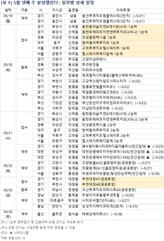 5월 4주 단지별 분양일정. [사진=부동산R114] |