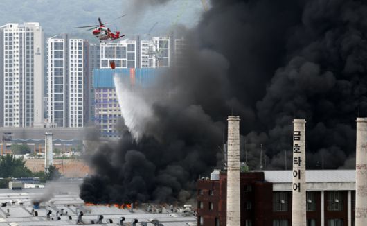 앞서 소방당국은 불이 처음 난 정련동에 쌓인 생고무 20t 가량이 모두 타려면 최소 사흘 이상 걸릴 것으로 봤다. 인화물질이 많은 타이어공장의 특성상 불길이 14만925㎡ 규모의 2공장 여러 건물로 빠르게 확산한 것도 진화에 난항을 겪게 했다.