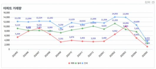 하지만 올해 2월 거래량은 6562건으로 늘었다. 잠실·삼성·대치·청담 지역의 토허제가 해제되면서다. 이후 3월 아파트 거래량이 1만건을 돌파했다.