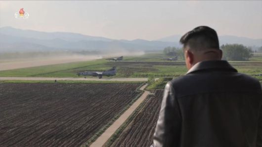 김정은 북한 국무위원장이 지난 15일 제1공군사단 관하 비행연대를 방문해 공군 반항공(방공)전투 및 공습 훈련을 지도했다고 조선중앙TV가 17일 보도했다. [사진=연합뉴스] |