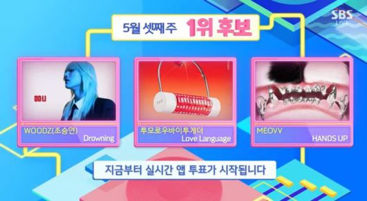 18일 오후 방송된 SBS ‘인기가요’에는 5월 셋째주 1위 후보가 공개됐다.